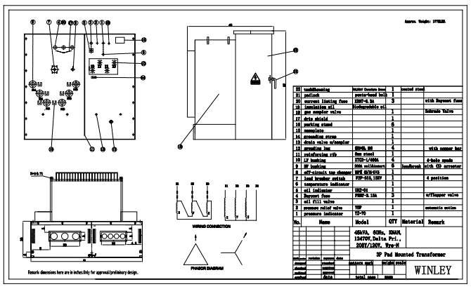 WINLEY offers a complete line of liquid-filled ThreePhase Pad-Mounted distribution transformers that meet applicable ANSI®/IEEE® standards.With high voltages up to 34.5 kV and ratings up to 5,000kVA, WINLEY compartmental-type Three Phase Pad-Mounted Commercial Transformers are designed for outdoor installation on a concrete pad and provide underground power distribution to commercial, ndustrial and institutional loads.